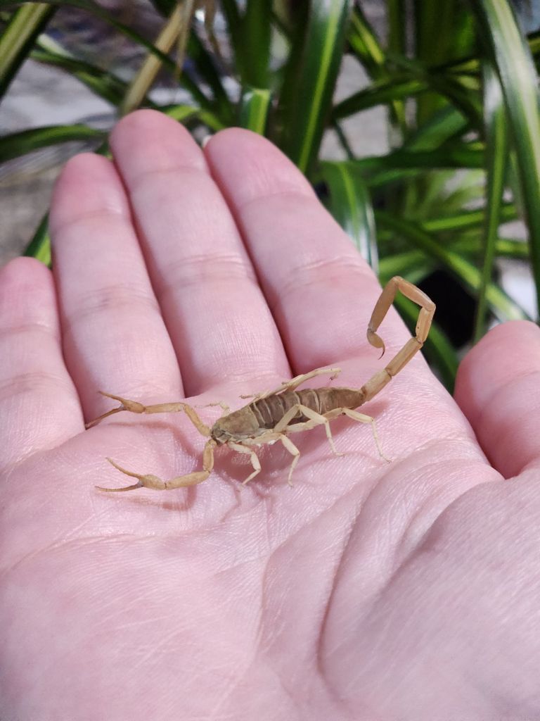 About a month ago, I found an Arizona bark scorpion that was deceased in our pond. I skimmed the water and fished it out. I then preserved the scorpion and have been holding onto it for the right time.